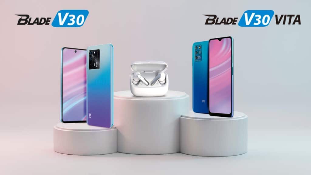 Al adquirir alguno de los siguientes equipos ZTE de la familia Blade; ya sea el Blade V30 vita con lector de huella integrado en el botón de desbloqueo, o el Blade V30 con pantalla perforada de 6.67” FHD+, se dará de obsequio un par de audífonos promocionales inalámbricos Bluetooth.