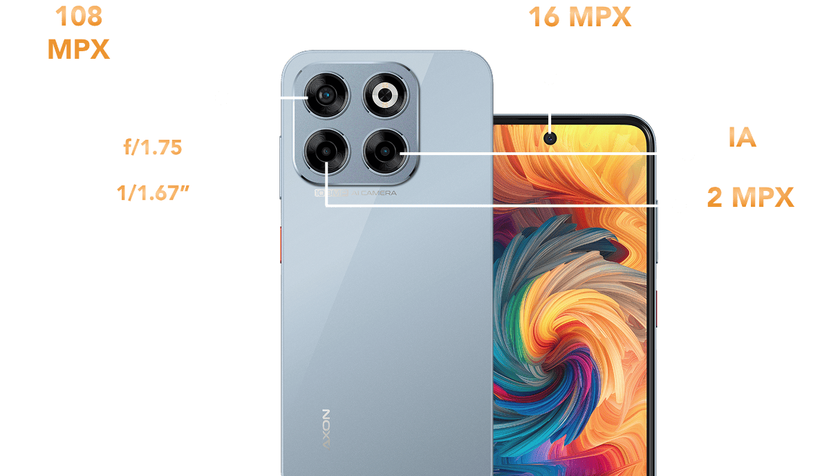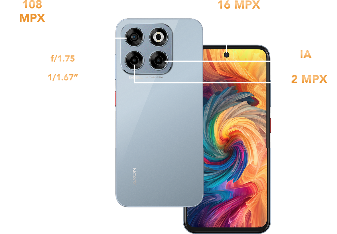 Cámara principal 108+2 Mpx + IA, frontal 16 Mpx